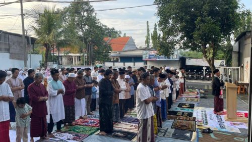 Tagar.co – Salat Idulfitri digelar di halaman MI Muhammadiyah Jln. Raya Bangkingan 46 Surabaya, Jumat (20/3/2026).