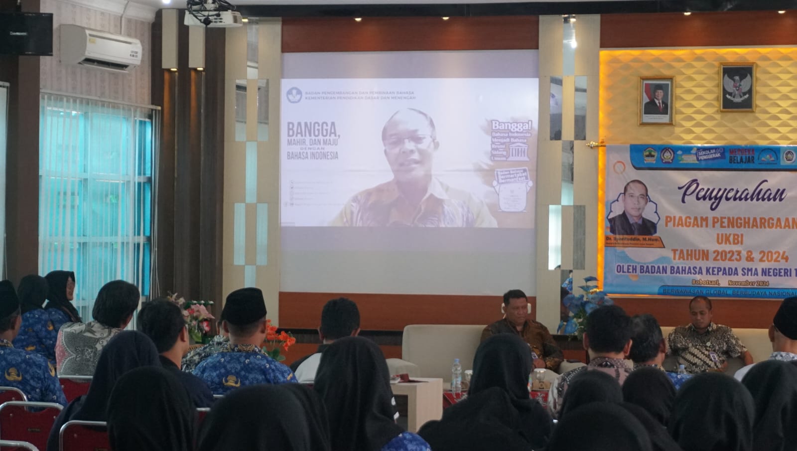 Tagar.co – Badan Pengembangan dan Pembinaan Bahasa (Badan Bahasa), Kementerian Pendidikan Dasar dan Menengah (Kemendikdasmen) melalui Balai Bahasa Provinsi Jawa Tengah memberikan penghargaan Uji Kemahiran Berbahasa Indonesia (UKBI) kepada tiga sekolah di Kabupaten Purbalingga, yakni SMA Negeri 1 Bobotsari, SMP Negeri 1 Padamara, dan SMP Negeri 1 Purbalingga.