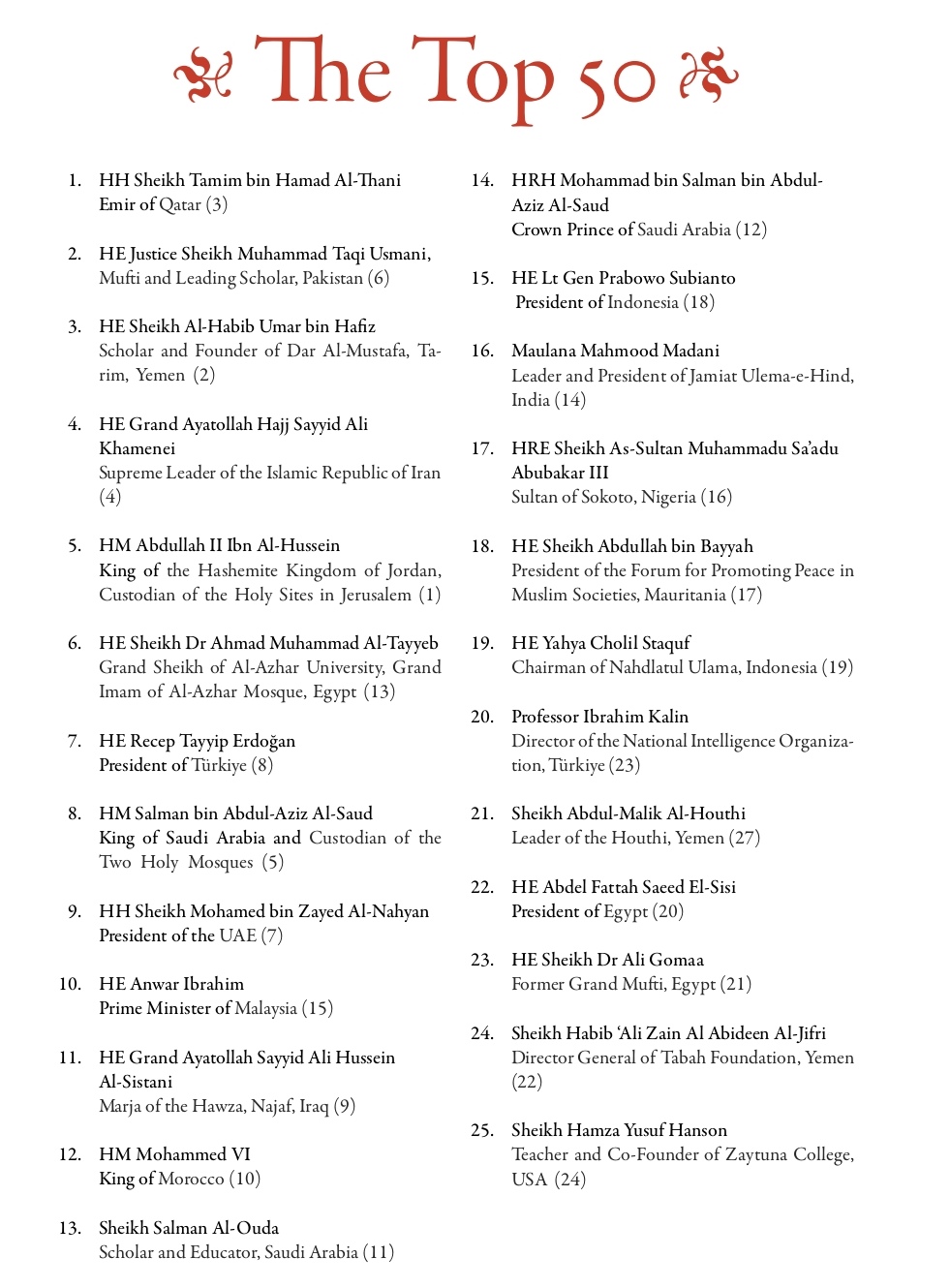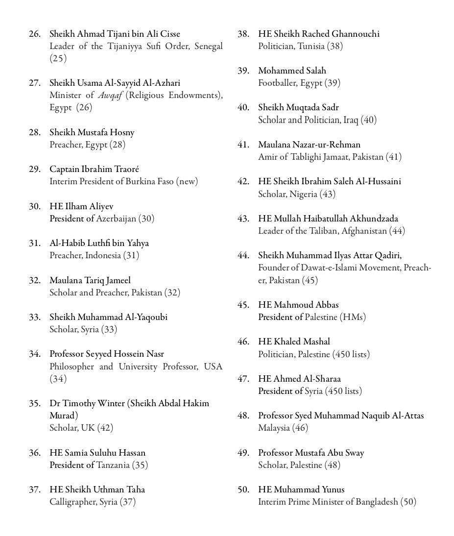 Baca juga: 50 Peringkat Teratas Daftar 500 Tokoh Islam Paling Berpengaruh di Dunia Tahun 2025