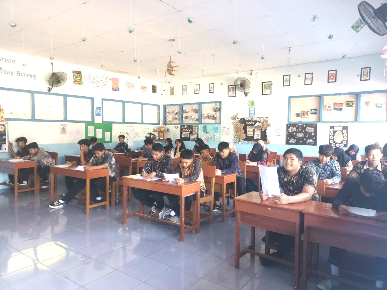 Meski tengah diuji secara akademik, semangat kebudayaan tetap hadir. Para siswa terlihat antusias menyelesaikan soal ujian, sambil menumbuhkan rasa bangga mengenakan batik sebagai wujud cinta produk dalam negeri.