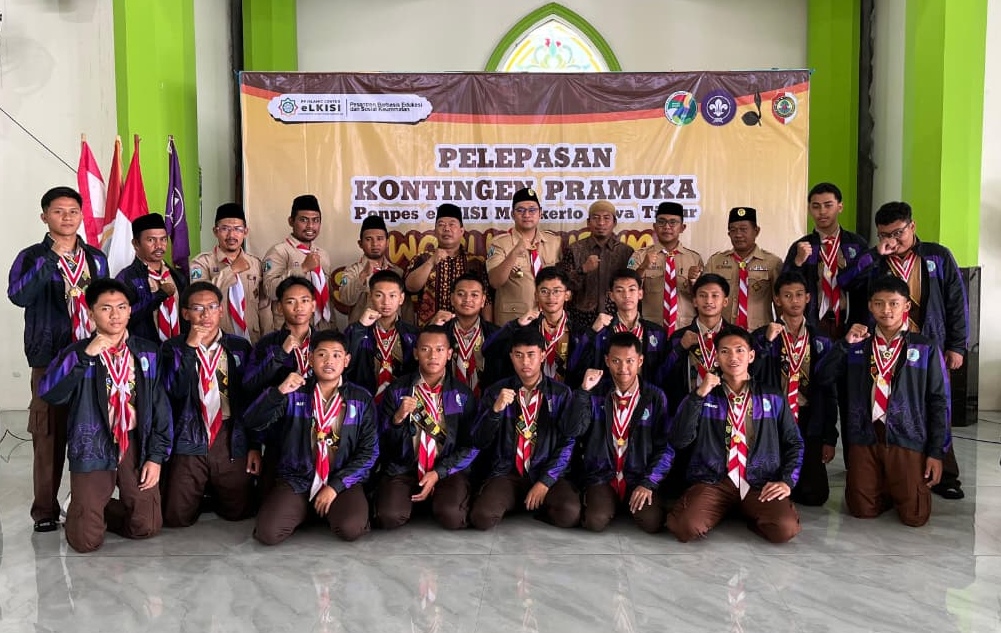 Tagar.co – Dari halaman pesantren, gema takbir dan yel-yel pramuka menggema, Ahad 7 September 2025. Sebanyak 30 santri Pondok Pesantren Islamic Center (PPIC) eLKISI di Pungging, Kecamatan Mojosari, Kabupaten Mojokerto, Jawa Timur resmi dilepas untuk mewakili Mojokerto.