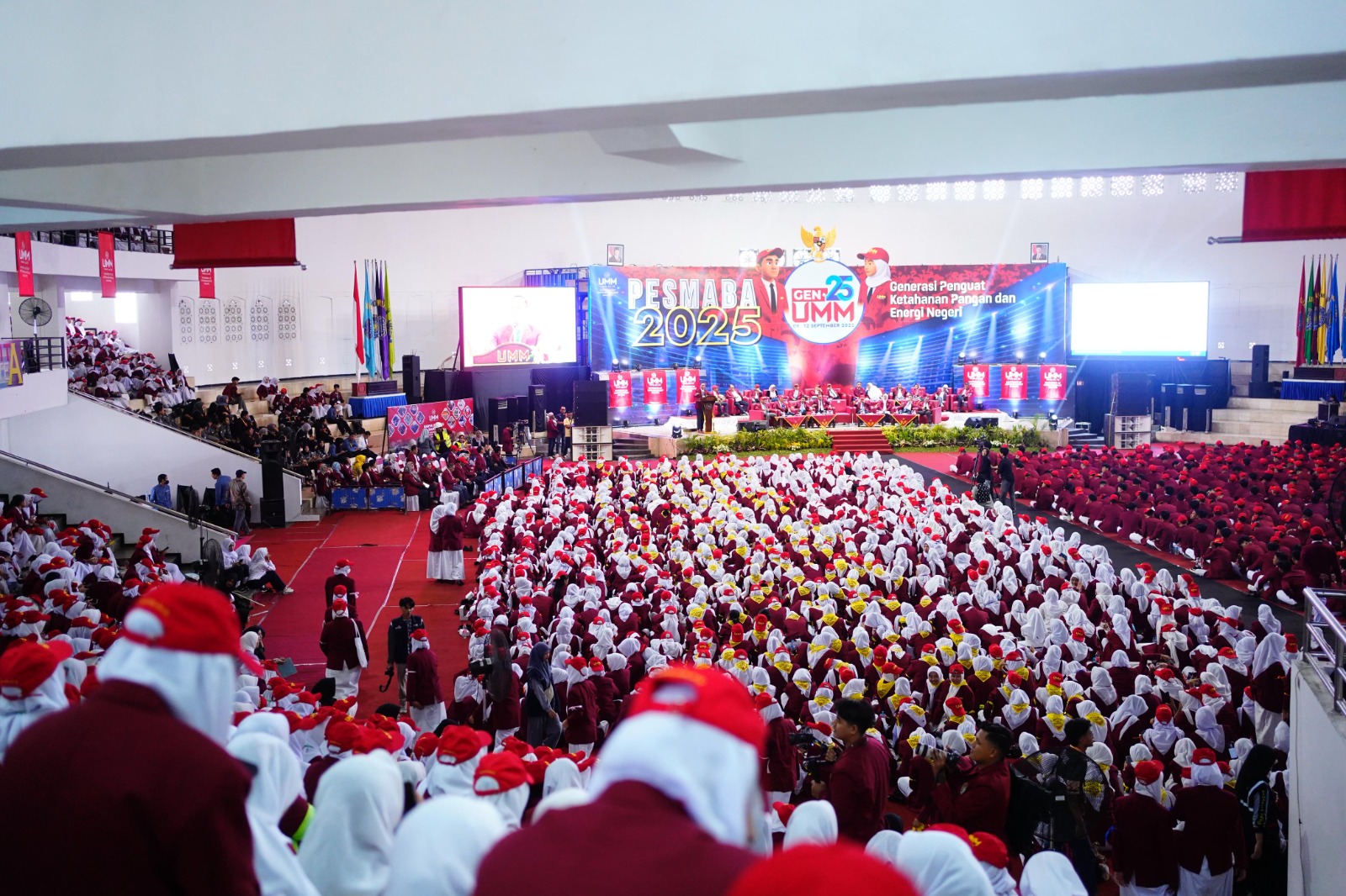 Di belakangnya terbentang spanduk besar bertuliskan World Muslim Scouts Jamboree 2025, sementara bendera merah putih berkibar di sisi panggung. Suasana hening sejenak saat ia menyampaikan pesan penuh kebanggaan kepada para santri.